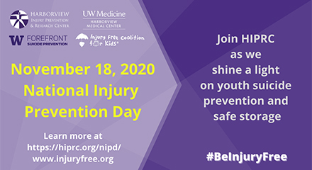With that backdrop, the Harborview Injury Prevention & Research Center (HIPRC) and the University of Washington’s Forefront Suicide Prevention center, in partnership with the Injury Free Coalition for Kids, are inaugurating National Injury Prevention Day on Wednesday, Nov. 18, 2020. Hospitals and trauma centers across the country will be bathed in green light to “shine a light” on opportunities to prevent serious childhood injury.